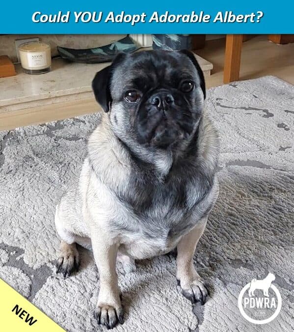 Albert may be best suited to an adult-only home or one with calm, older children. He hasn’t been tested regarding cats.