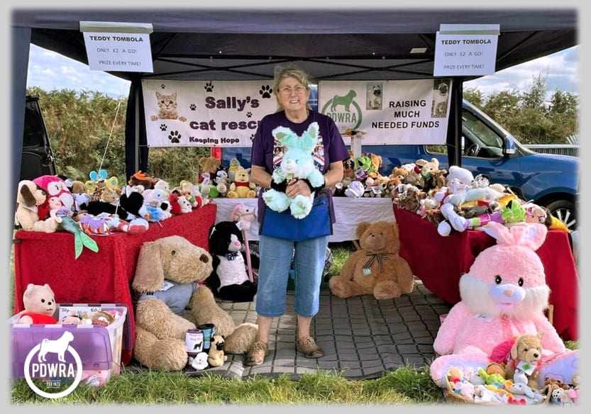 Alongside the Pantomimes, we’ve shared Lynn’s magnificent efforts holding Teddy Tombola stands every month during the summer at local Steam Rallies, splitting the proceeds between PDWRA and her local dog and cat rescues.