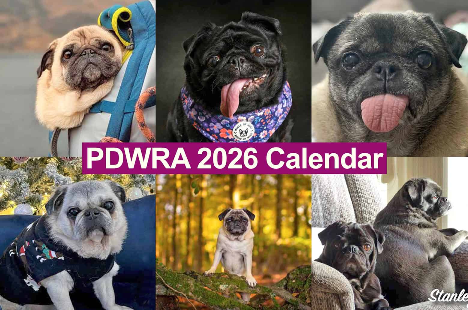 A portion of all proceeds is donated to PDWRA, so you’ll also be helping out Pugs in Need!