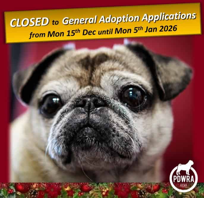 Applicants must be able to provide adequate insurance for the pugs and any pre-existing medical conditions will normally be covered by PDWRA during their lifetime.
